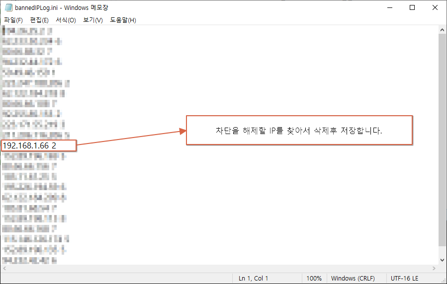 차단된 IP해제방법