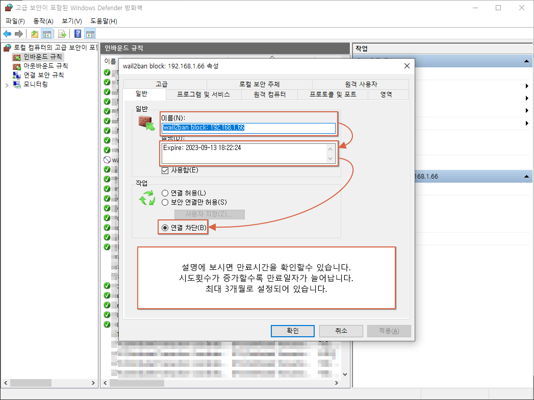 만료시간 IP 차단해제 기능은 새로운 IP차단 이벤트가 발생할때 이루어 집니다.