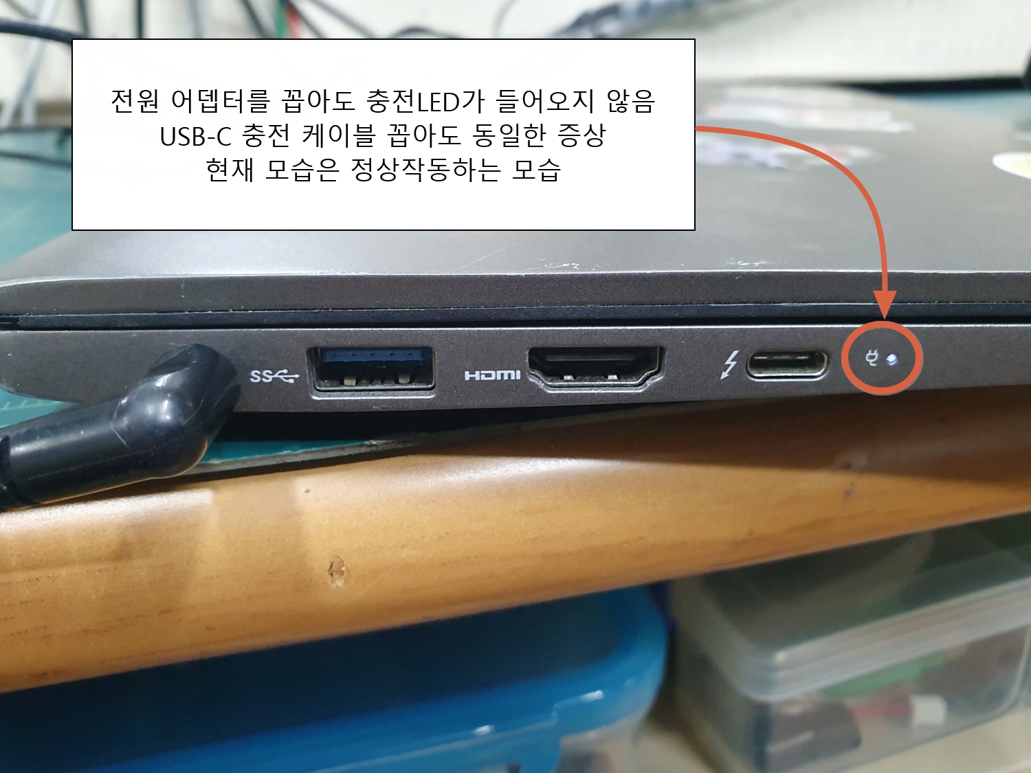 충전 어뎁터를 꼽아도 충전LED 들어오지 않음