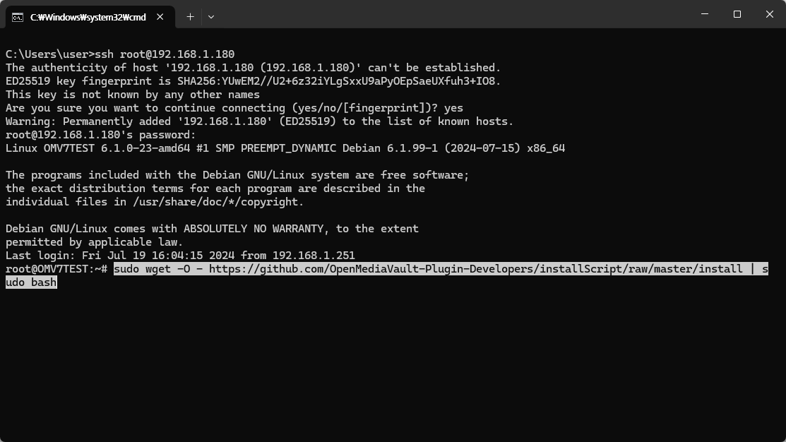 sudo wget -O - https://github.com/OpenMediaVault-Plugin-Developers/installScript/raw/master/install | sudo bash