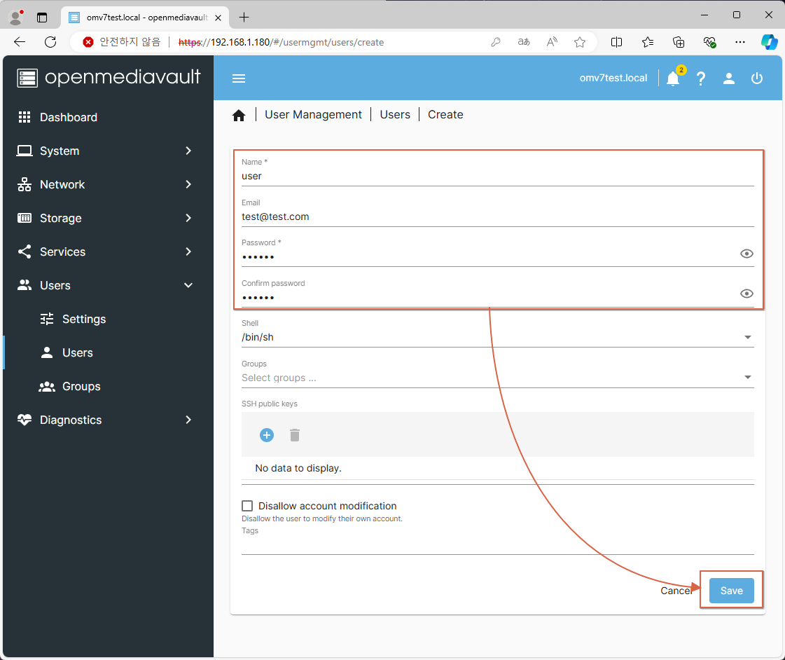 omv7 omv7설치중 입력했던 root비밀번호 입력