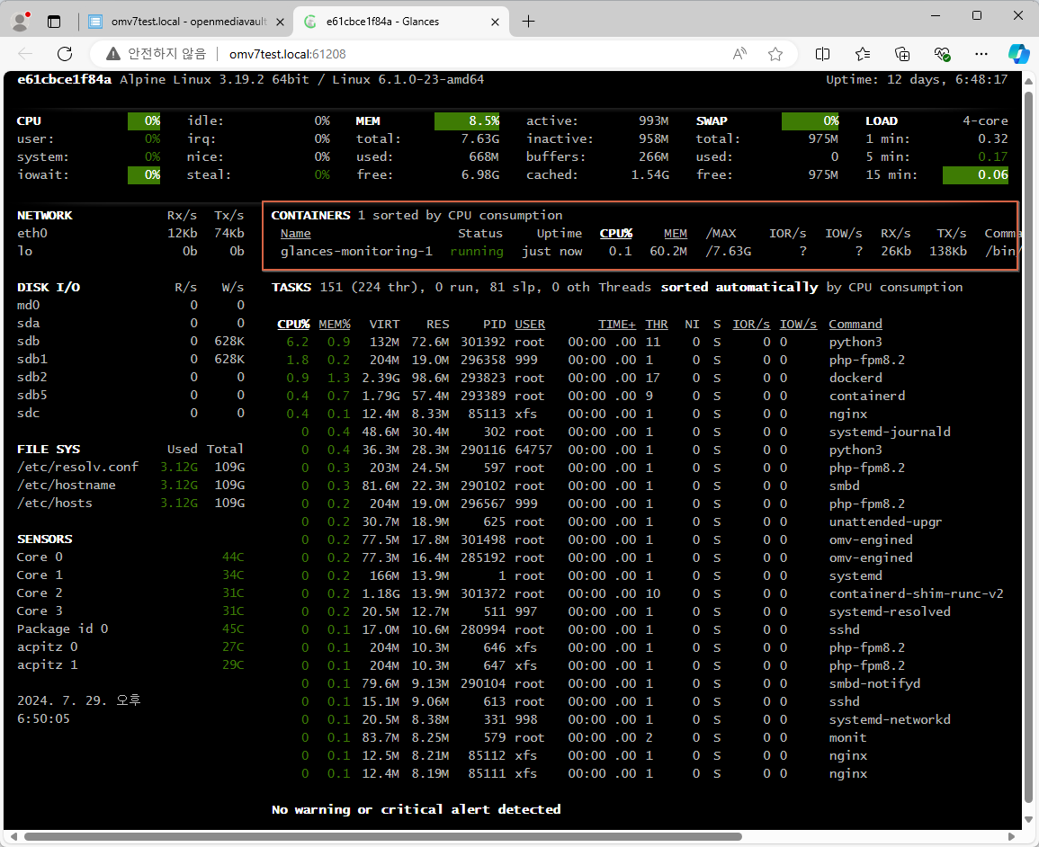 OMV5를 잘 사용하던중 OMV6가 나와서 테스트했지만 매끄럽게 운영이 되지 않아서 포기하고 OMV5만 사용했음