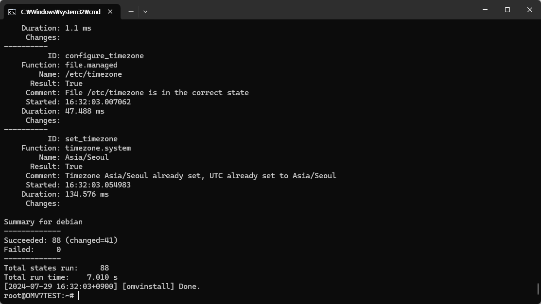 윈도우 cmd창에 ssh로 omv7을 접속합니다.