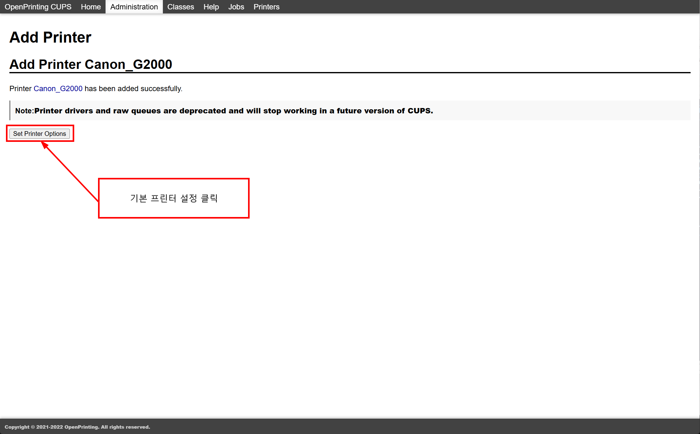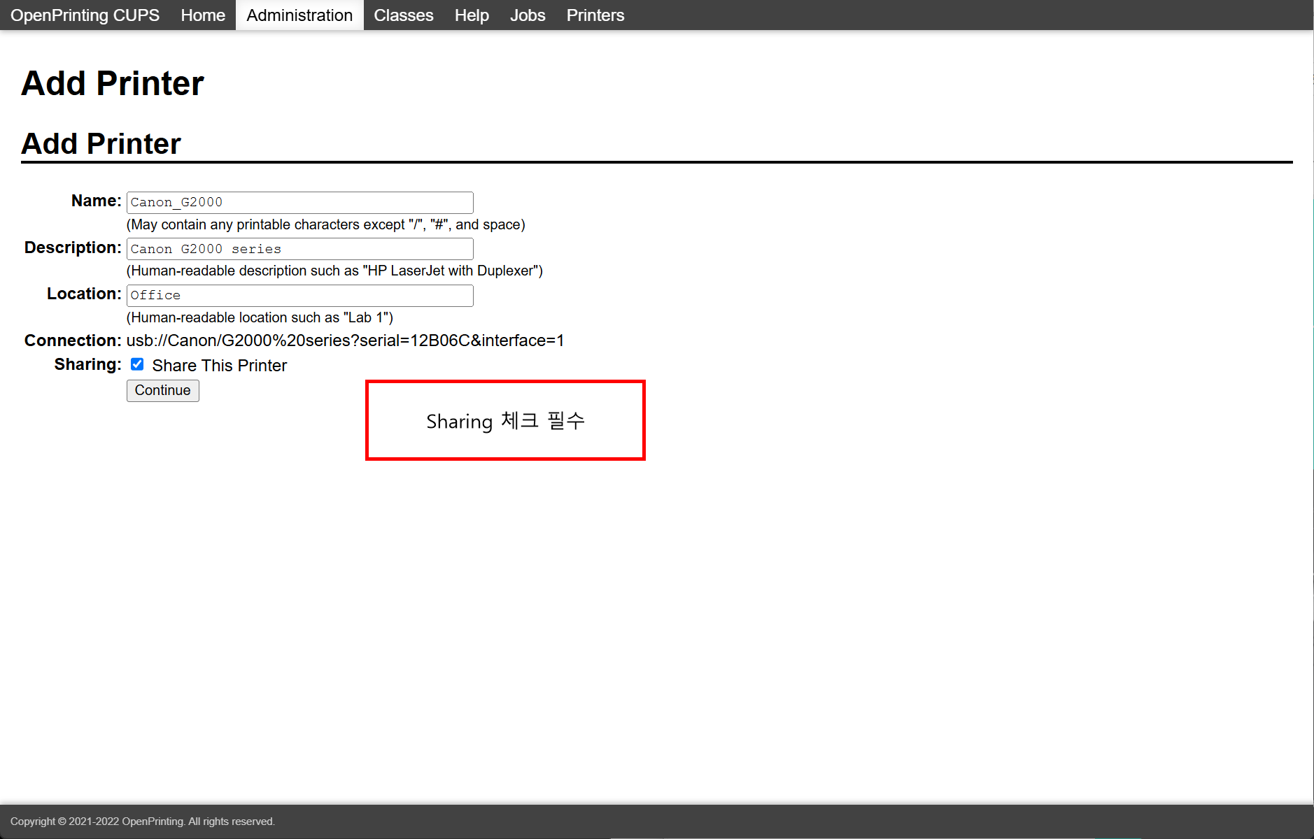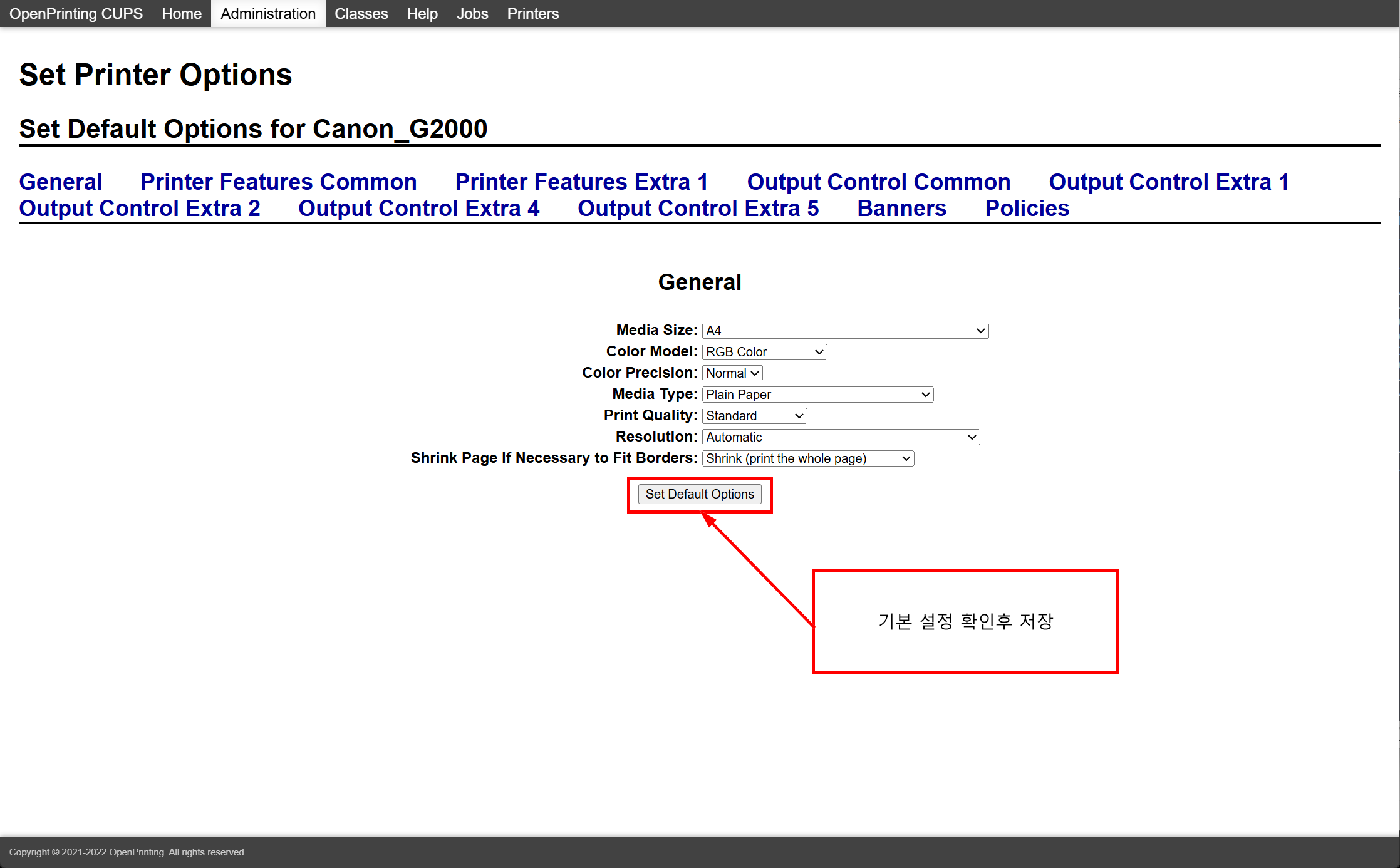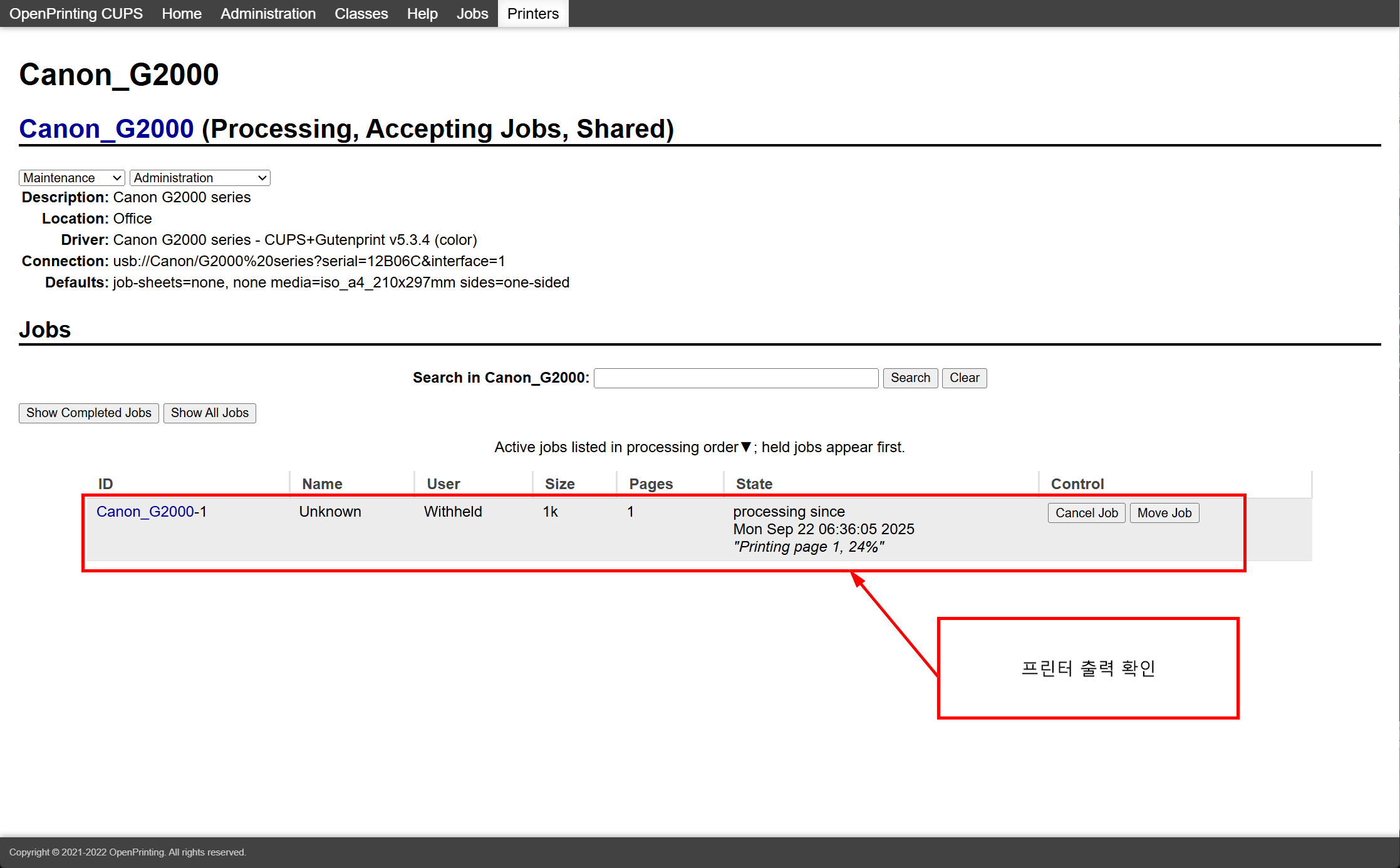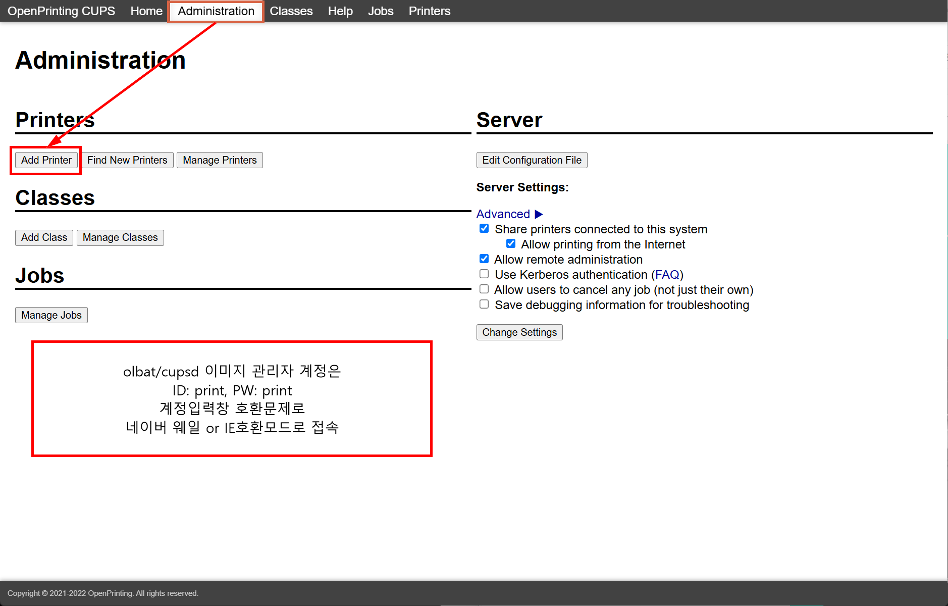 olbat/cupsd:stable-2025-03-03을 사용하는 이유는 최신 stable버전이 프린터 Share설정값이 적용되지 않는 문제로 2025-03-03버전을 사용합니다.