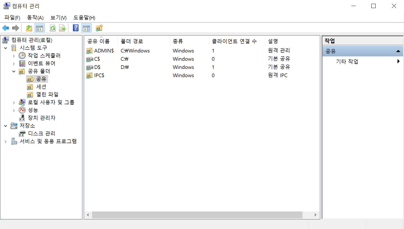 윈도우 기본 공유 리스트